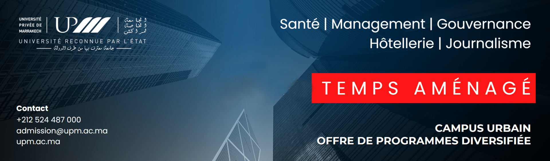 Vous souhaitez concilier votre carrière professionnelle et vos études ? L’Université Privée de Marrakech propose des programmes en temps aménagé avec un emploi du temps le week-end, vous permettant de continuer à travailler tout en vous formant.