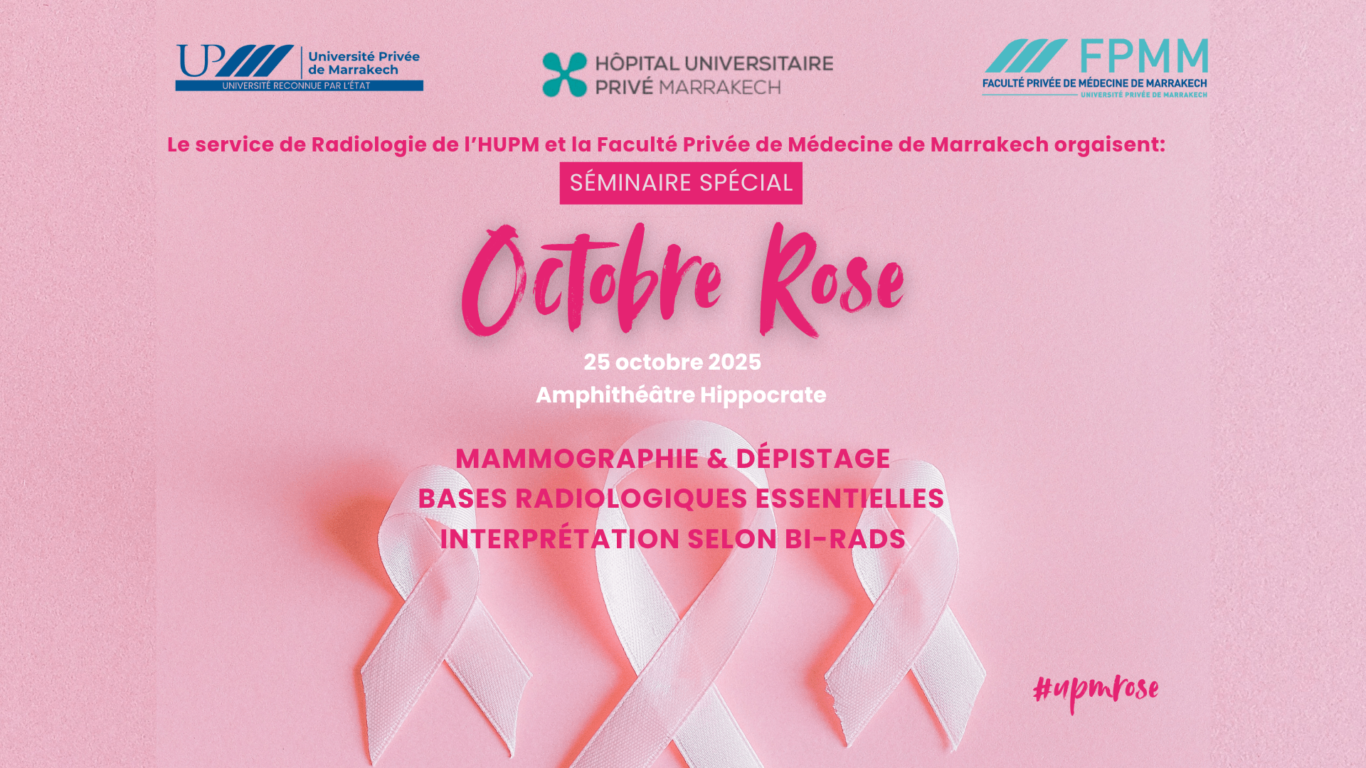 Chaque mois d’octobre, le monde se pare de rose pour rappeler l’importance du dépistage précoce du cancer du sein.À l’Université Privée de Marrakech, cette campagne prend tout son sens à travers l’engagement des étudiants, professeurs et partenaires du Pôle Santé, qui unissent leurs efforts pour informer, sensibiliser et agir.
